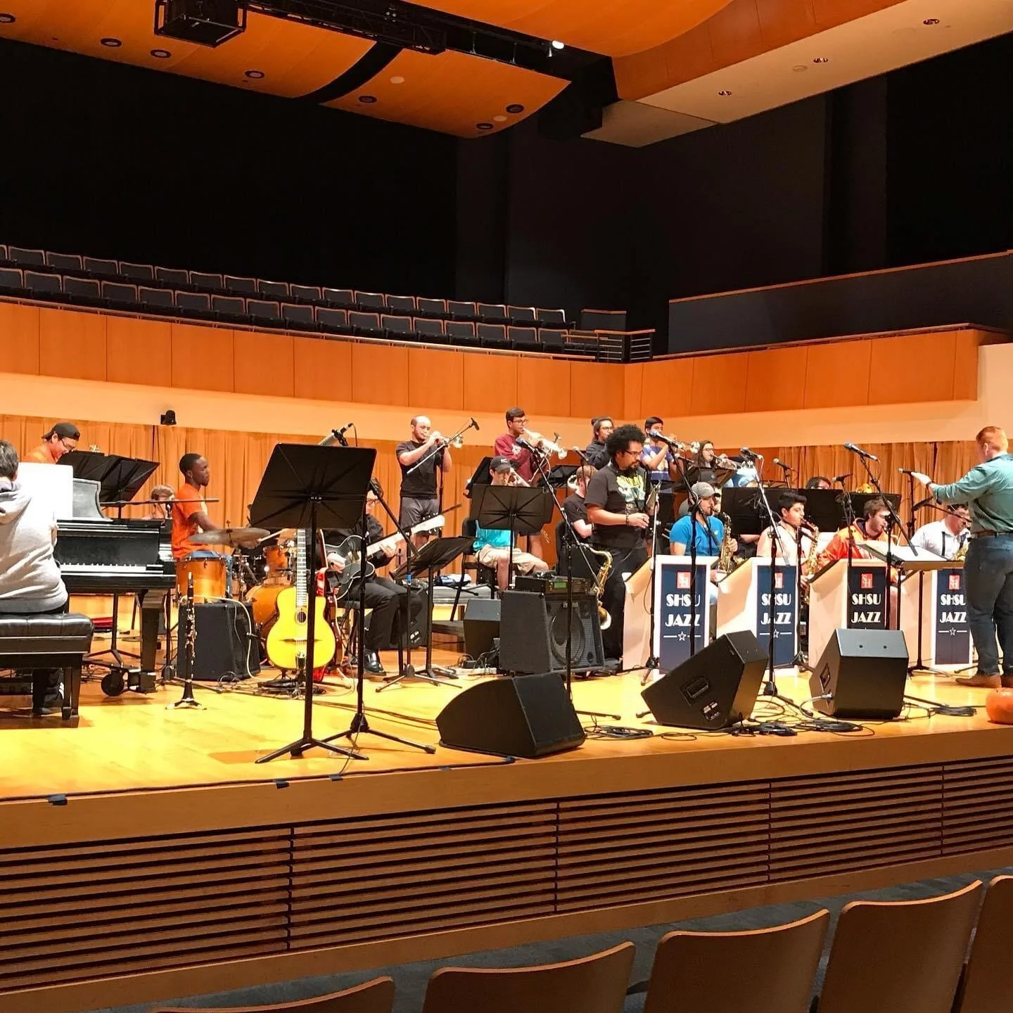 One of the best parts of my job at Sam Houston is directing the jazz lab band. Big band jazz is my passion & i love getting my students as excited about it as i am. in the shsu jazz lab band, we focus on the fundamentals of jazz - swing, style, rhythm and basics of improvisation. We also put a heavy emphasis on sight reading. A skill students must have entering the professional world as a musician.